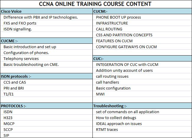 CCNA ONLINE TRAINING COURSE CONTENT :